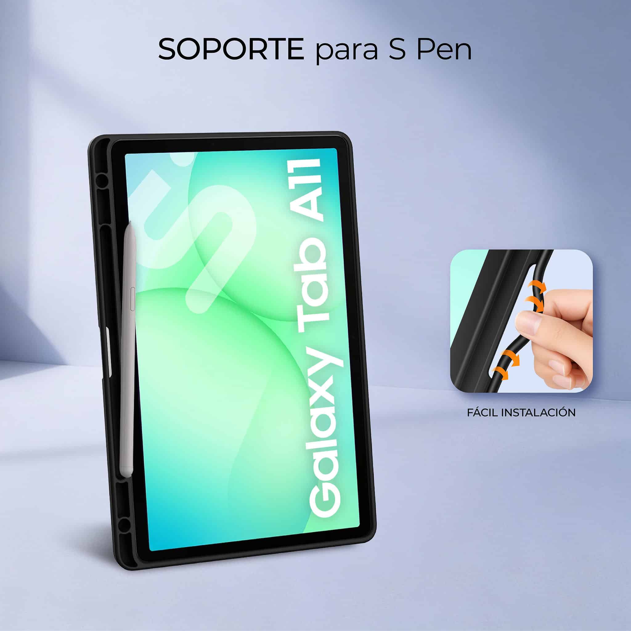 Compatible con Samsung Galaxy Tab A11 8,7″ (modelos 2025 SM-X130 / SM-X135), es una funda resistente, práctica y perfecta para uso profesional, educativo o personal.
